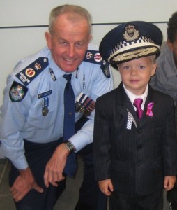 This photo of Commissioner Atkinson and Harry Plint (then aged 3) was taken at Police Memorial Day 2009. It is not very often that anyone gets to wear the Commissioner Police Peak Hat. Harry and Commissioner Atkinson also, together attend a Christmas Lunch together. We are truly indebted to the committment that Commissioner Atkinson provides to the Foundation and to also our family on the difficult days. Commissioner Atkinson also launches the Fundraising Event “Breakfast Creek Keg Race” every year.